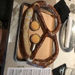 Omg everything was soooo good. Except the buttermilk ranch sauce...I wasn't a fan. Friends posted this on FB tonight when they went so I HAD to go-tonight. So I grabbed my Monthly Date Night Boyfriend and told him we are going on a second date this month! I got a glass of Riesling . My eyes nearly went to the back of my head. It was sweet and tangy. The mozzarella sticks were actually gooey. The burger was greasy the griddle burger but that's not a bad thing! It had butter on the bun and oh yum! The bread pudding...oh now oh my god. It was soo good. Ask for extra cheesecake ice cream!! They give you a baby scoop-like you're not fat or something. There's like this sugary crumble stuff and then you get a bite with some of the salted butter in it and it soooo good. Omg. I loved the decor. It's kind of a pain because the hostess opens the door then you wait for her to take you down the hallway where BAM! Cow Carcasses in the window! Then you have to wait for her again to follow because she's holding the door. Service was great.